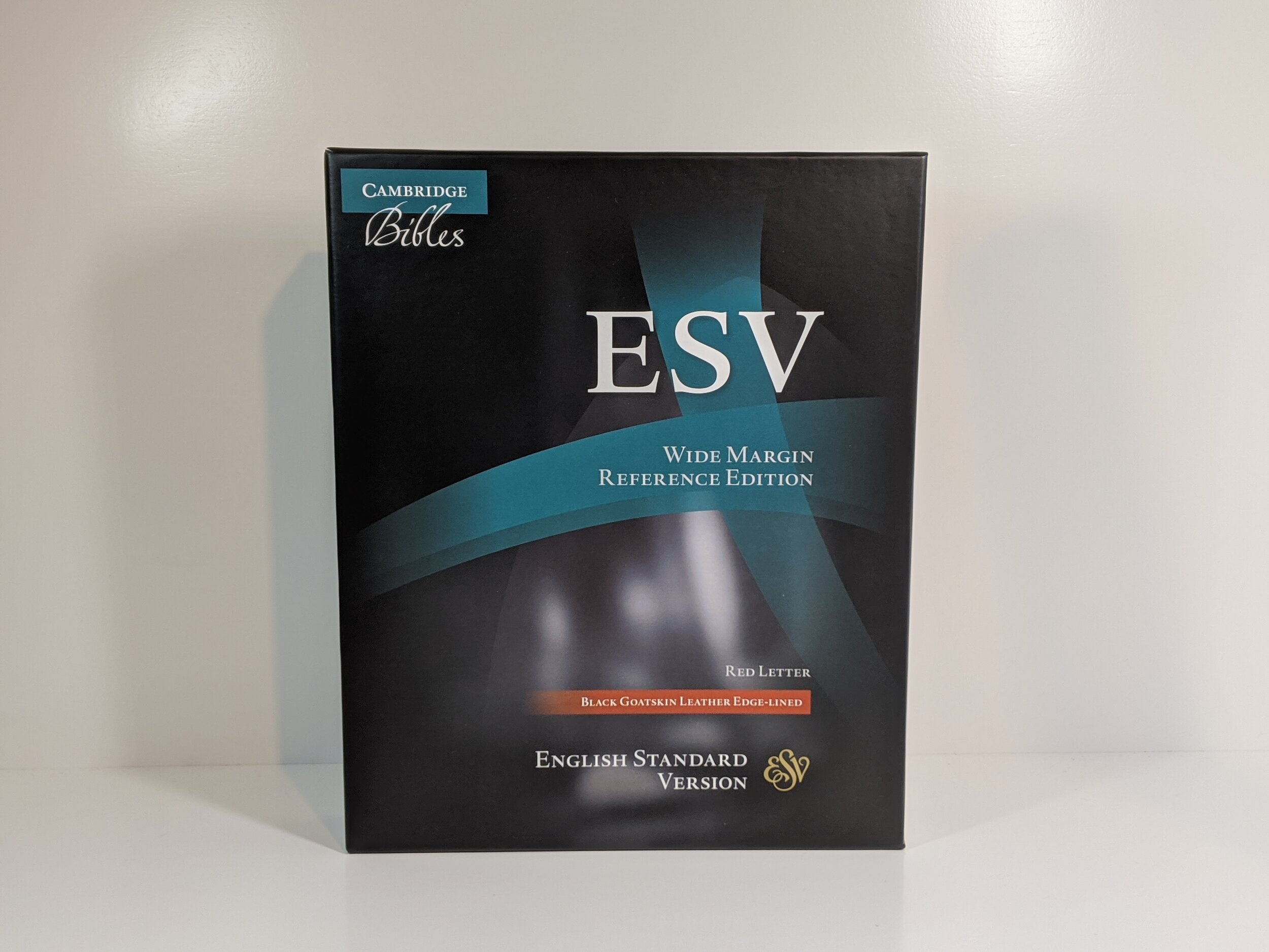 I love Cambridge Bibles and they make some of my favorite editions! The Topaz and the Clarion have become favorites for me and so I’m excited to have the opportunity to review another Bible from them. Today I’m reviewing their Wide Margin Reference Bible. The particular Bible I’m reviewing is the ESV in Black Goatskin and Red Letter. I should also note that the edition I’m reviewing was printed in 2019 and uses the 2016 ESV text. They make this Bible in a plethora of options including Goatskin and black letter, hardback, and calfsplit. They also make it in several different translations.