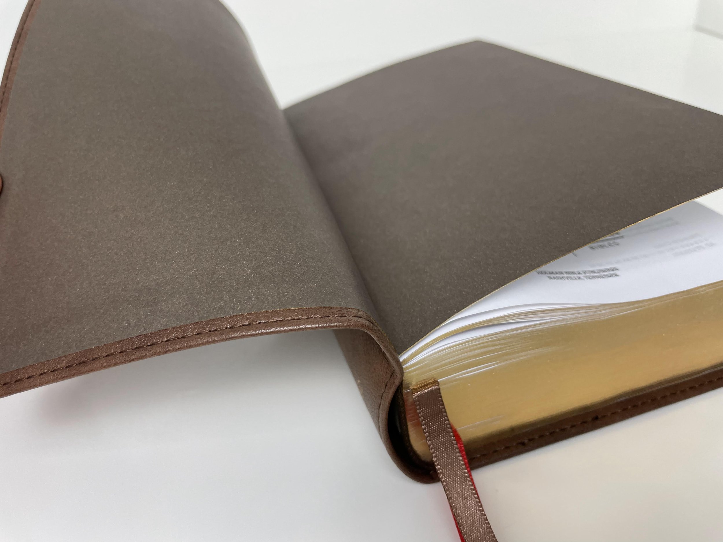 It turns out that it’s awesome. It reminds me a lot of Cambridge Clarion but it uses imitation leather (mine is the brown LeatherTouch) and it’s way cheaper! The brown LeatherTouch is really really nice. I keep saying that fake leather keeps getting better and it really does. This also comes in a navy and I’d really like to get my hands on one! Back to the brown though. It has gold page edges and two double sided satin ribbon bookmarks! One is brown and the other is red. Two bookmarks is once again a really nice touch!
