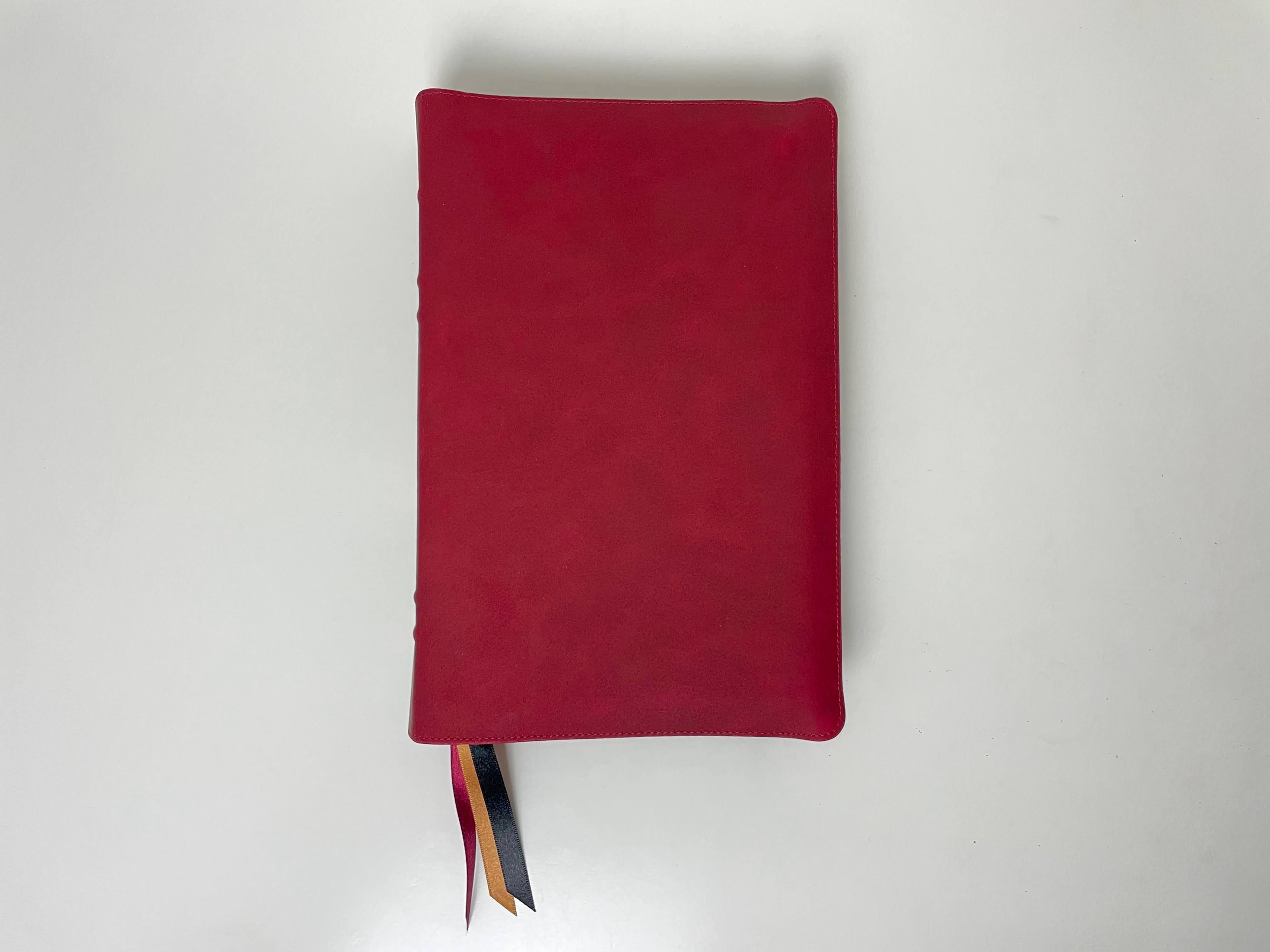 When I unwrapped the Bible I was blown away. The Patina Red Italian Cowhide is gorgeous! Seriously, it’s stunning. It almost has an oxblood or bordeaux look to it with hints of black swirled in there. Red is a bold choice, but I highly recommend it. I don’t think any color could look better. Also, the feel of the Italian Cowhide is incredible. It’s so soft and smooth. I didn’t know I could like it better than goatskin, but I really do! It’s also Patina Red, which means it’s designed to develop character with use. I love Bibles like this because it will certainly change and become uniquely yours as you use it. This Bible isn’t described as full yapp, but I know many who would consider this a full yapp Bible (and that’s a good thing). I know it sounds like I’m gushing, but this Bible is really really nice!
