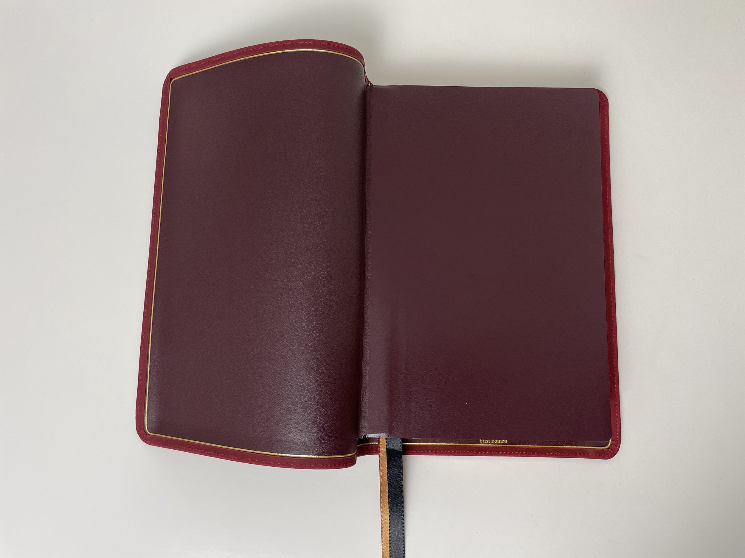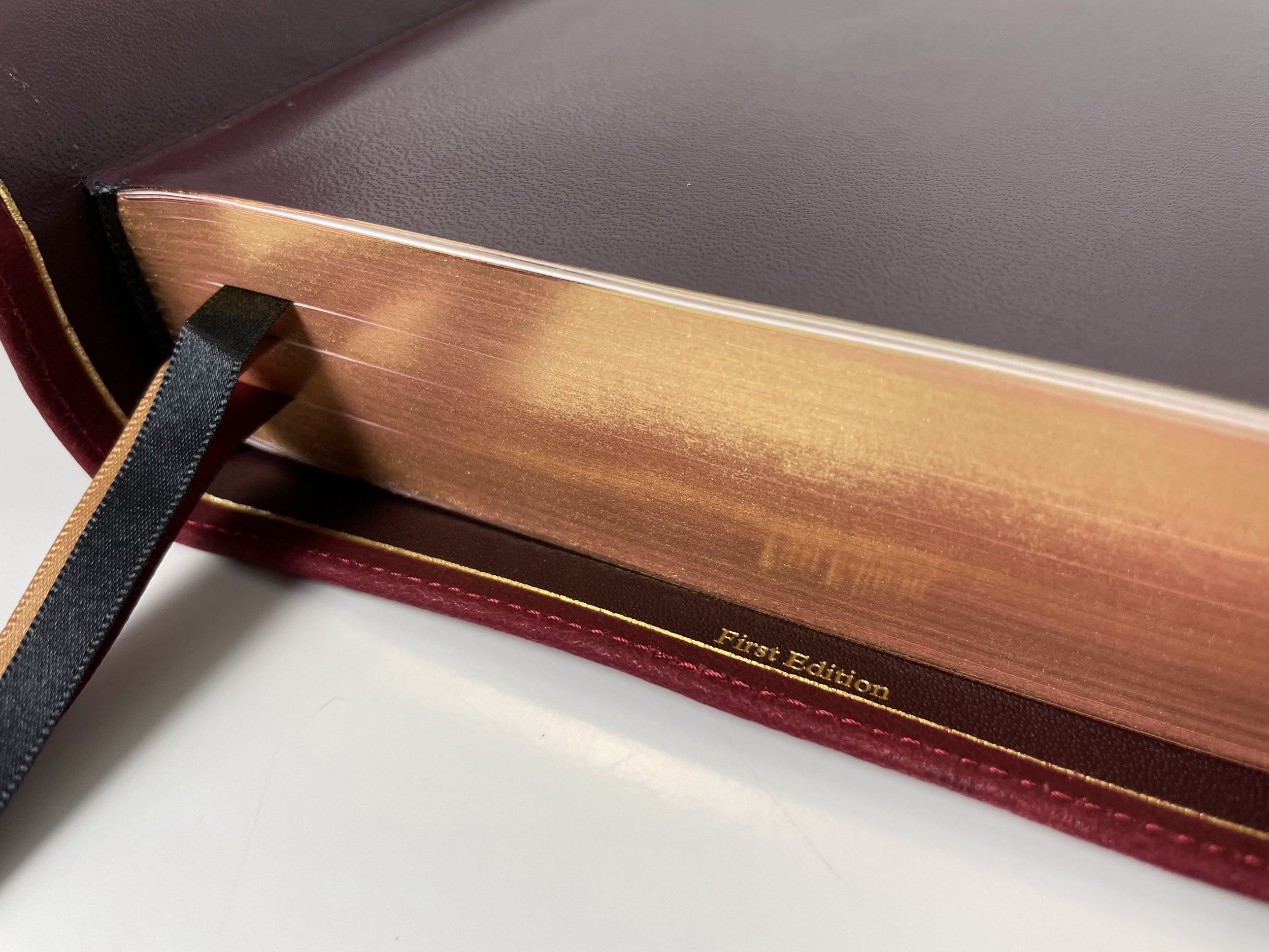 Inside is a maroon calfskin liner that feels better than any liner I’ve ever touched. There’s a gold perimeter gilt line and stamped in gold at the bottom center of the back cover are the words “First Edition.” I love this little touch. In my opinion, if you’ve found yourself enjoying the LSB, this little collectors feature makes this worth picking up. It’s a nice touch that will make these very collectible someday.