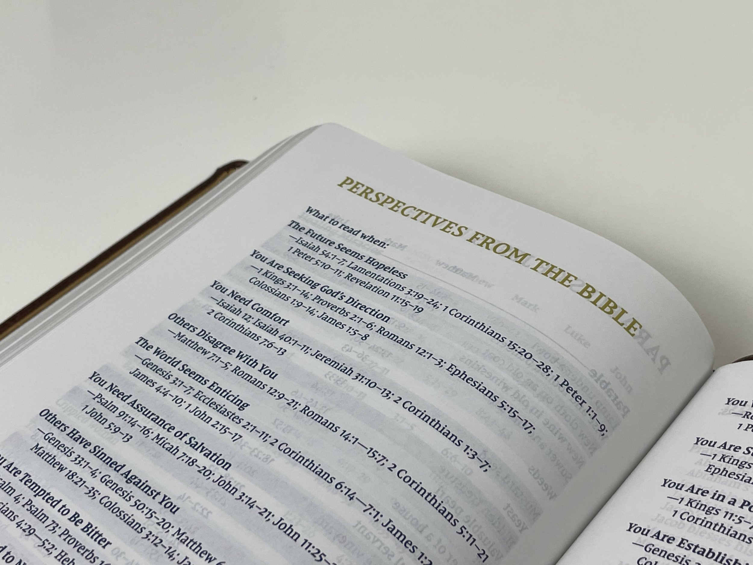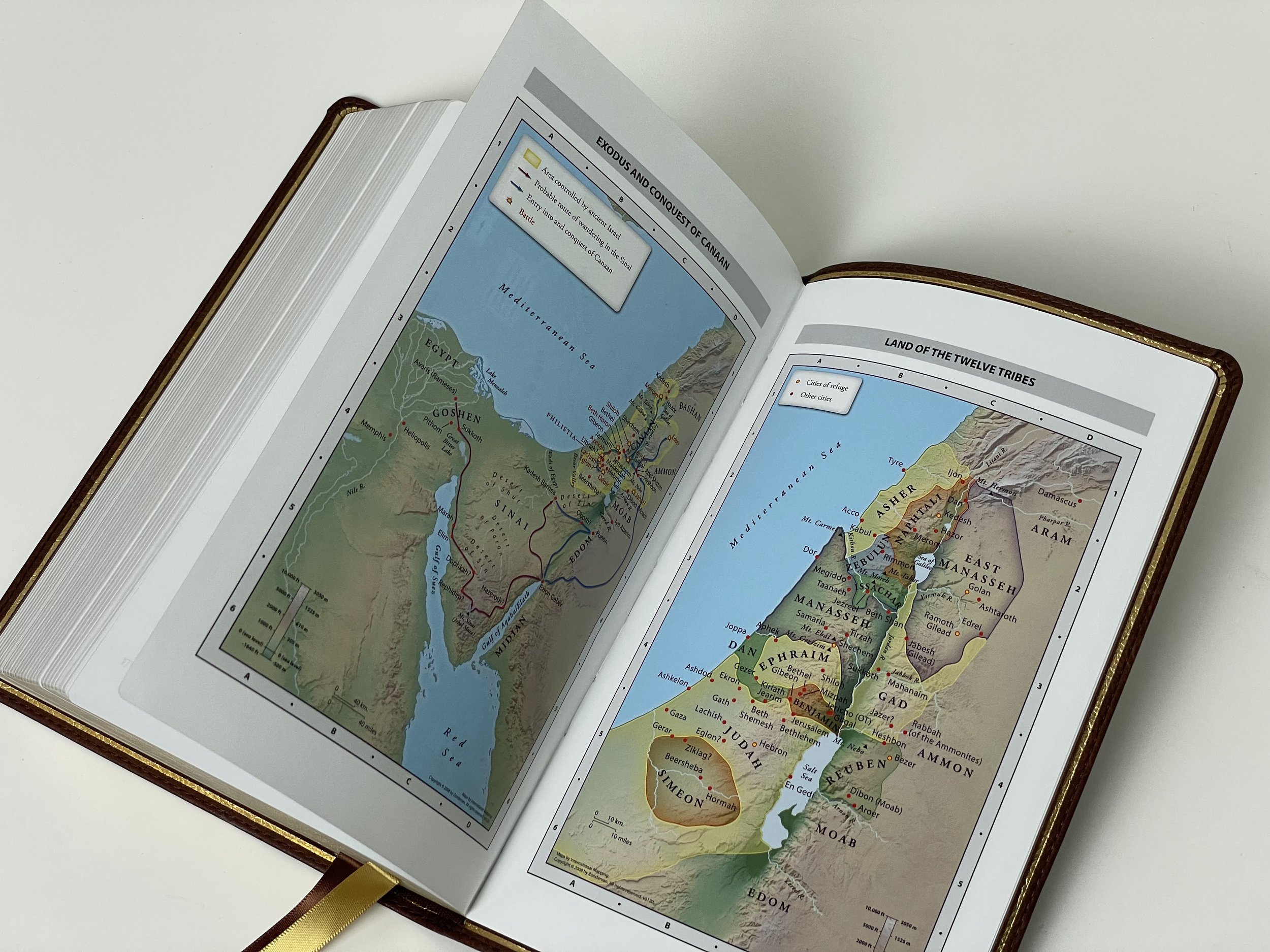 In the back, you’ll also find some helpful tables including “The Miracles of Jesus” and “Prayers of the Bible.” There are also several full color glossy maps, which I could gladly do without.