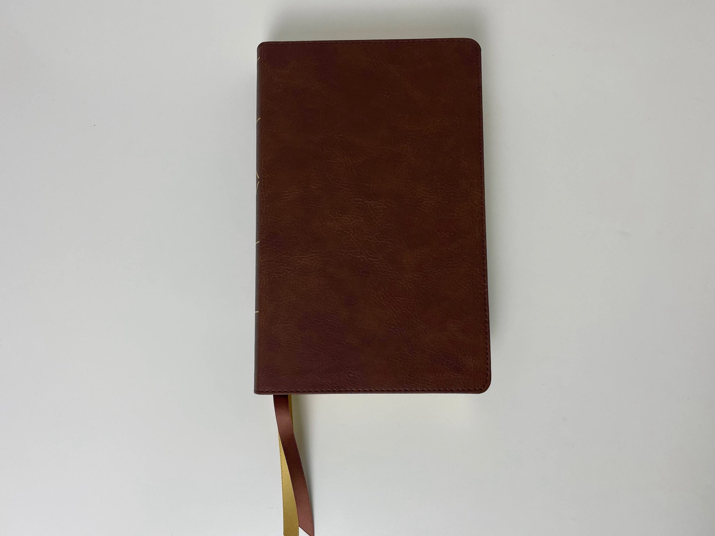 The brown leathersoft feels and looks great. I keep saying it, but artificial leather is just getting better and better. Zondervan’s Leathersoft is no exception. It has a nice, smooth feel, a great grain look, and when you open the cover it falls back down to being flat instead of keeping a curl.