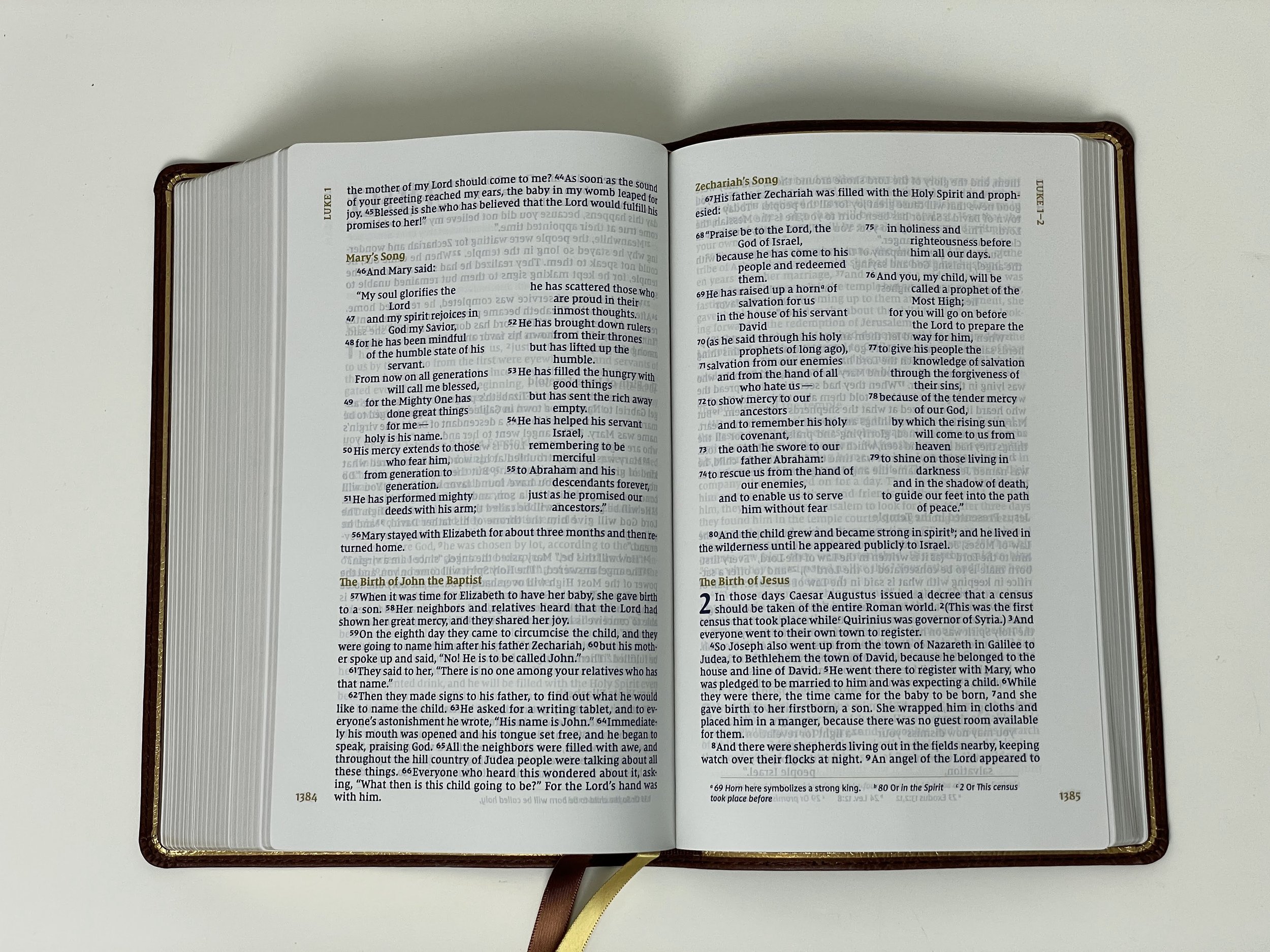 Another impressive feature on this edition is that Zondervan uses the same 36 gsm premium European Bible paper that comes on the higher end buffalo bound edition. Kudos to them for this choice! This means you get premium paper no matter which edition you choose!
