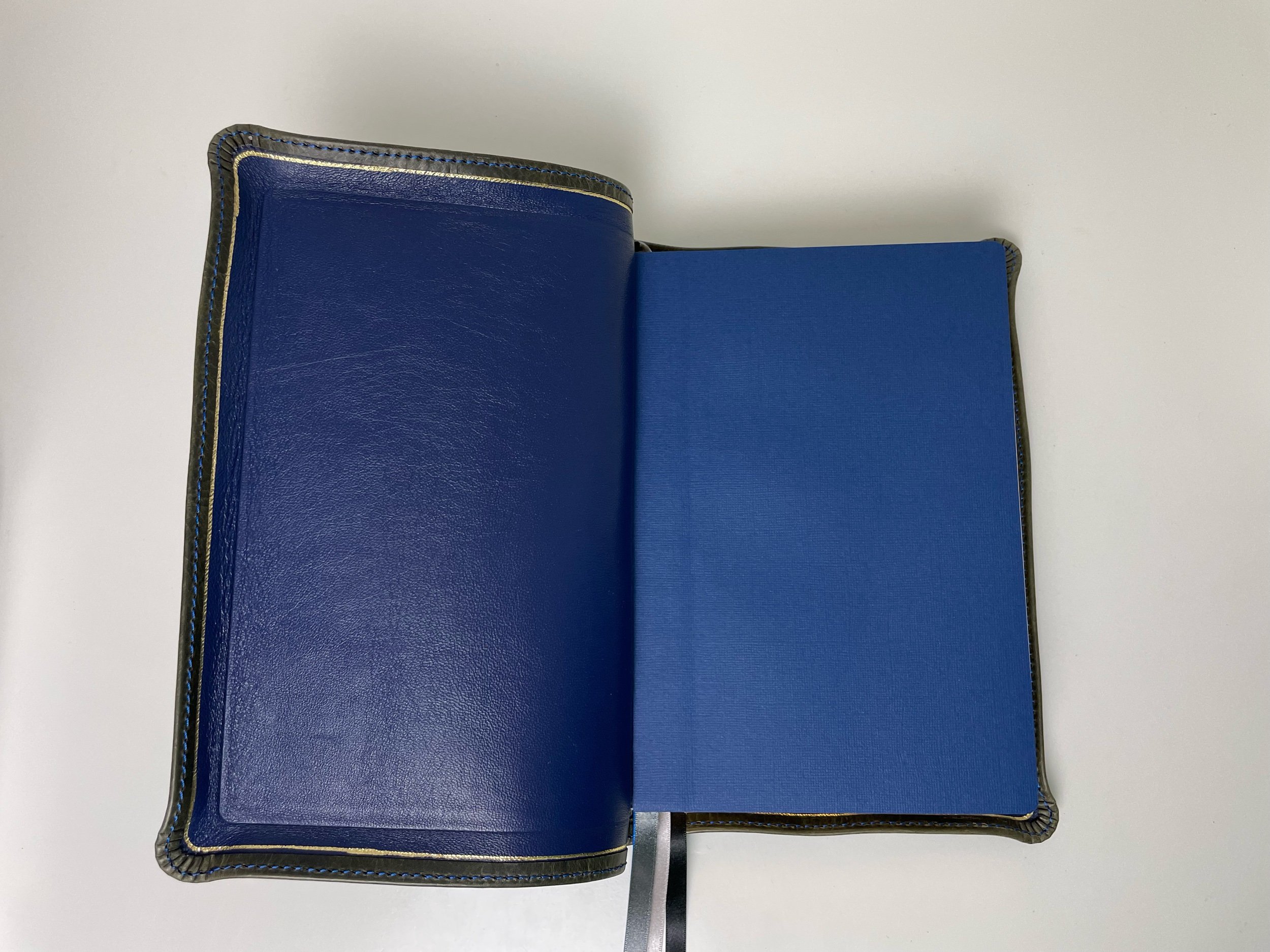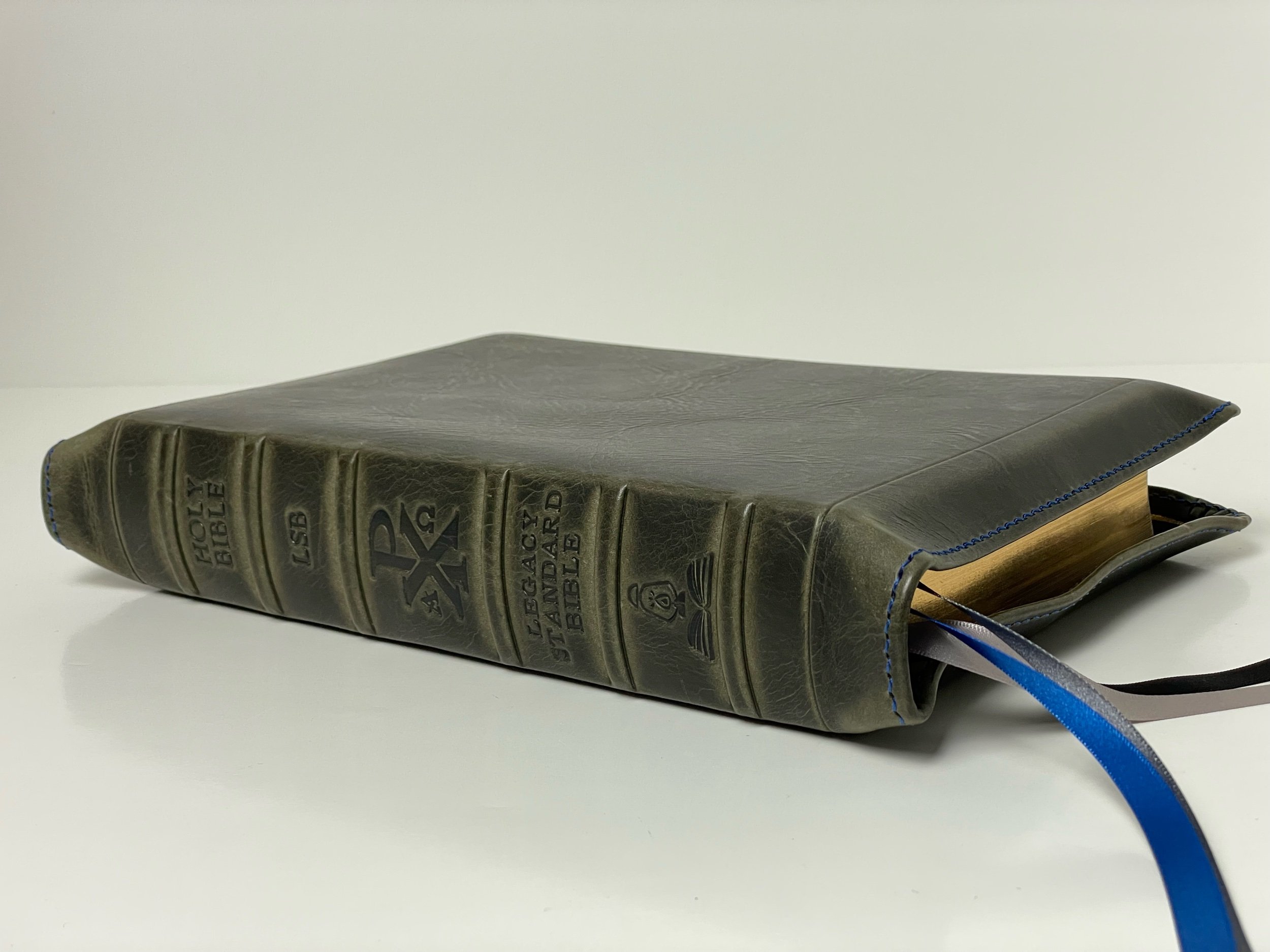 I’m excited to share that the day has finally come. My taste in Bible materials has changed a lot since I fist saw a PTL rebind and I’m eager to share with you what Jeffery created for me. Spoiler—it was worth the wait and it does not disappoint. Let’s take a close look at my PTL rebind of a LSB Wide Margin in Steel Grey Cowhide.