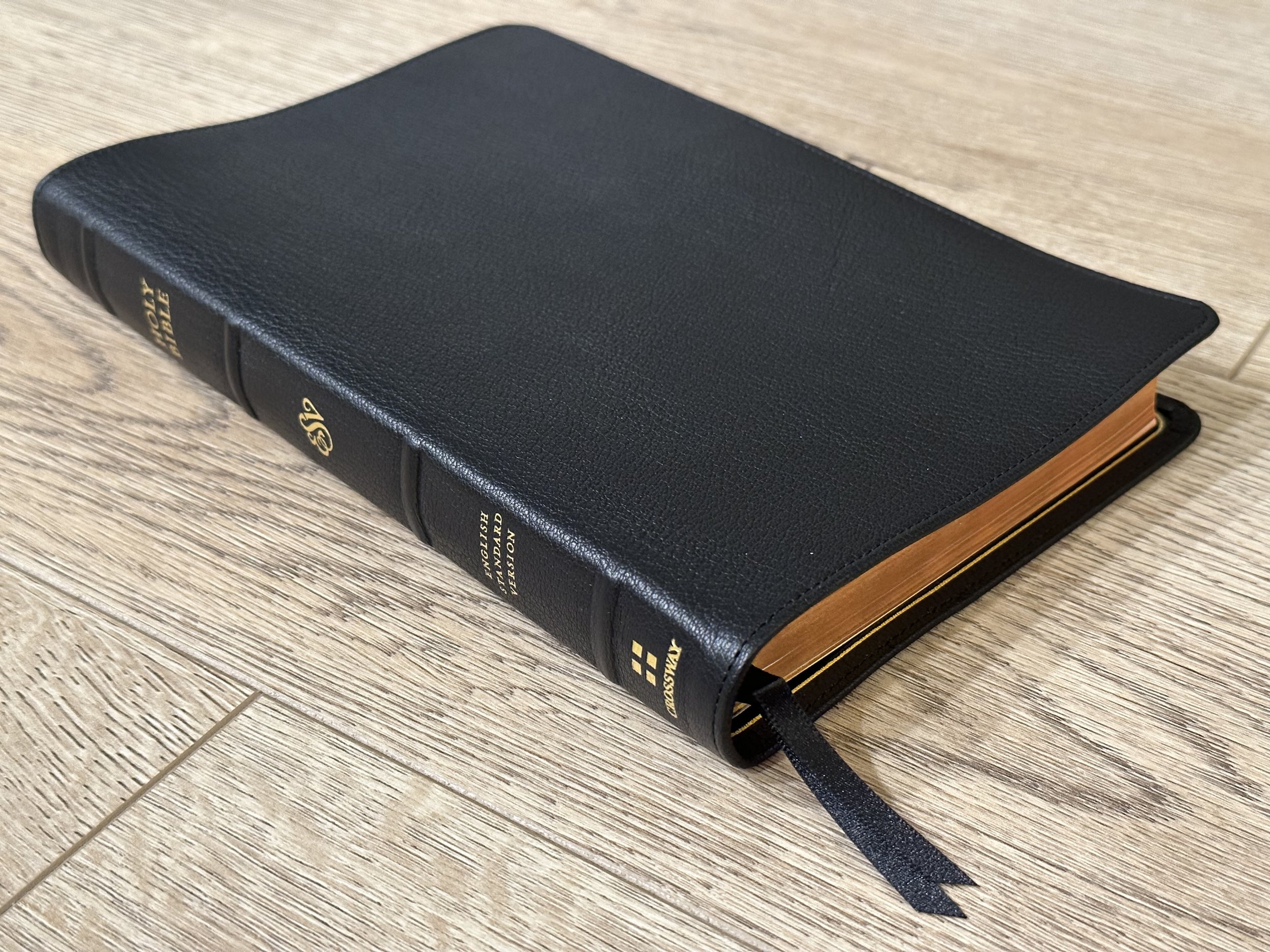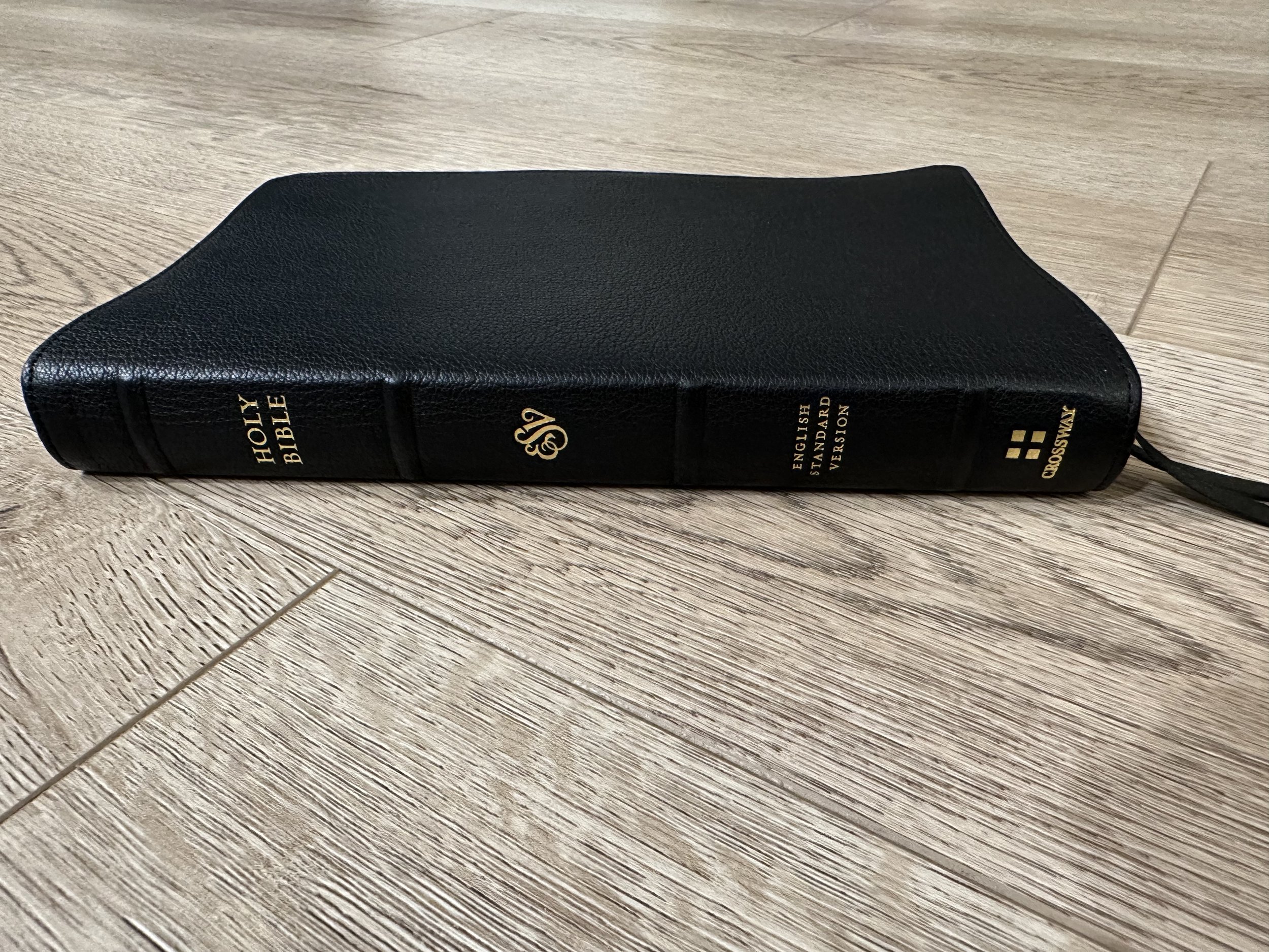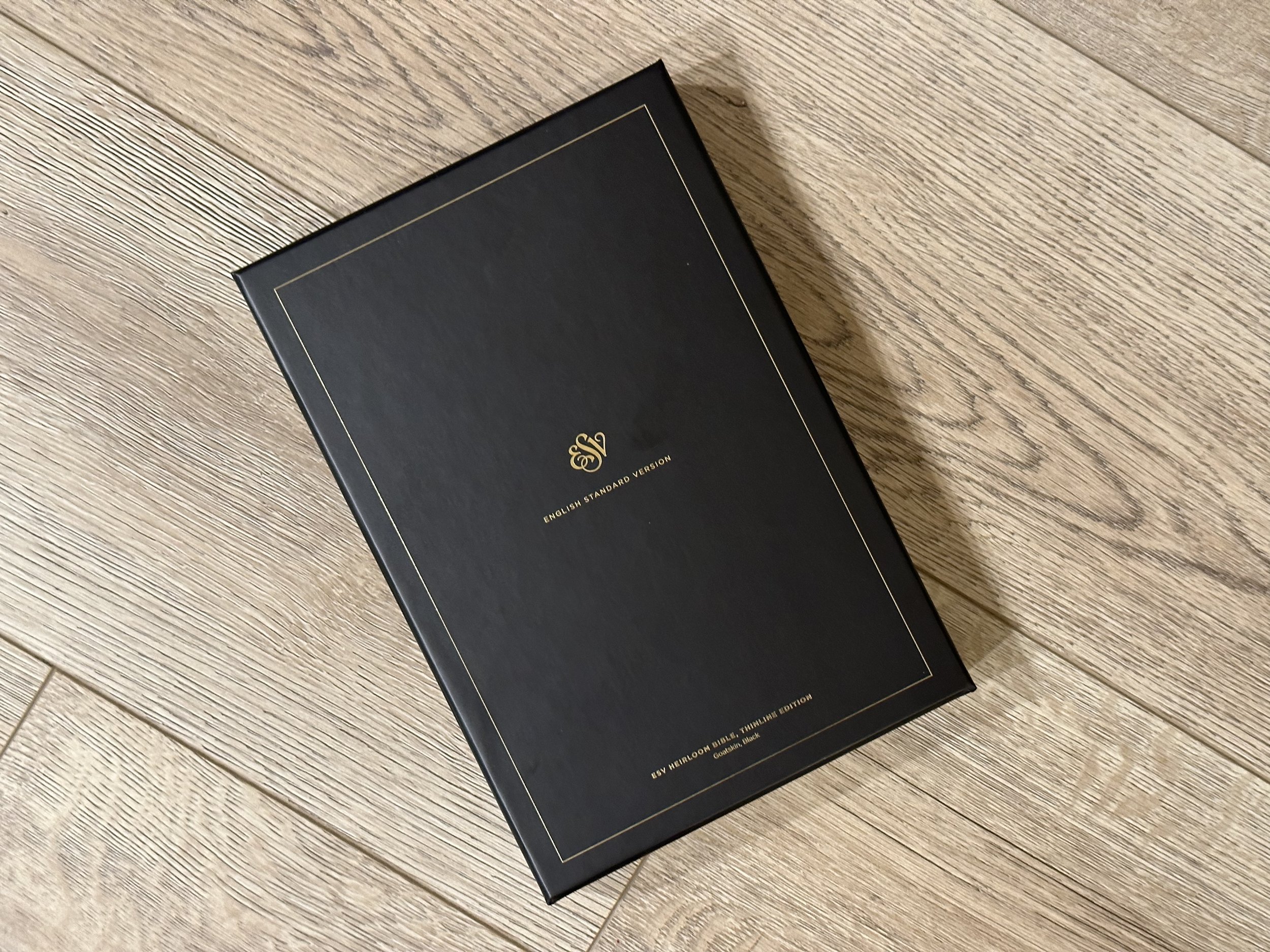 The Bible I’m reviewing today certainly strikes me as interesting. It’s a bit of a conundrum albeit a beautiful one. We will talk more about that late though. I’m reviewing the new 2022 ESV Heirloom Thinline in black goatskin.