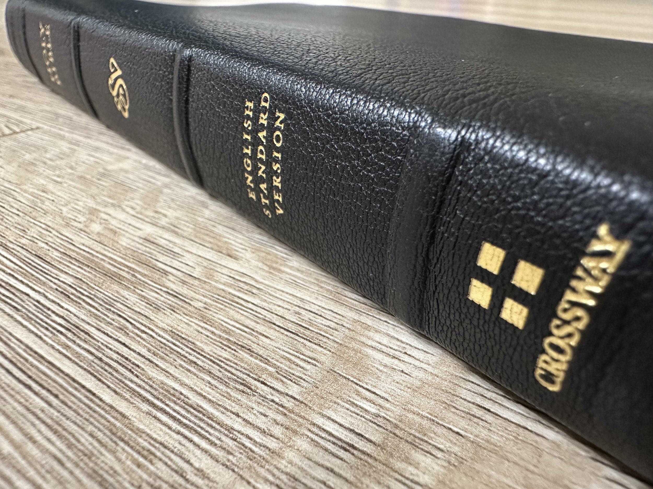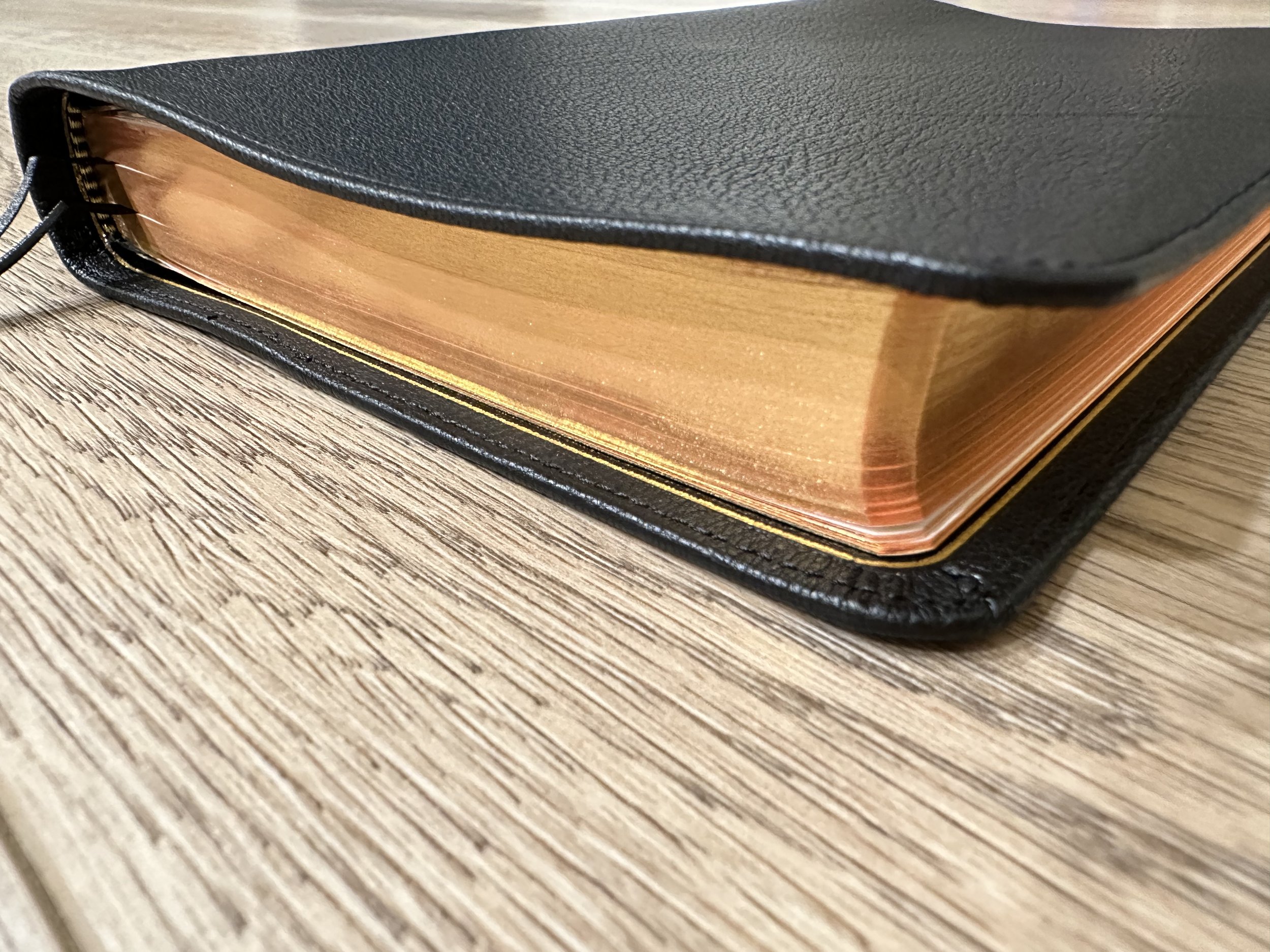 I know it sounds like I’ve been critical, but that’s what I’m supposed to do. I will say I truly really like this Bible. It’s also offered in Horween and I wanted that edition, but I think I probably like the goatskin even better! The black and gold looks traditional and classy. It looks like Crossway.