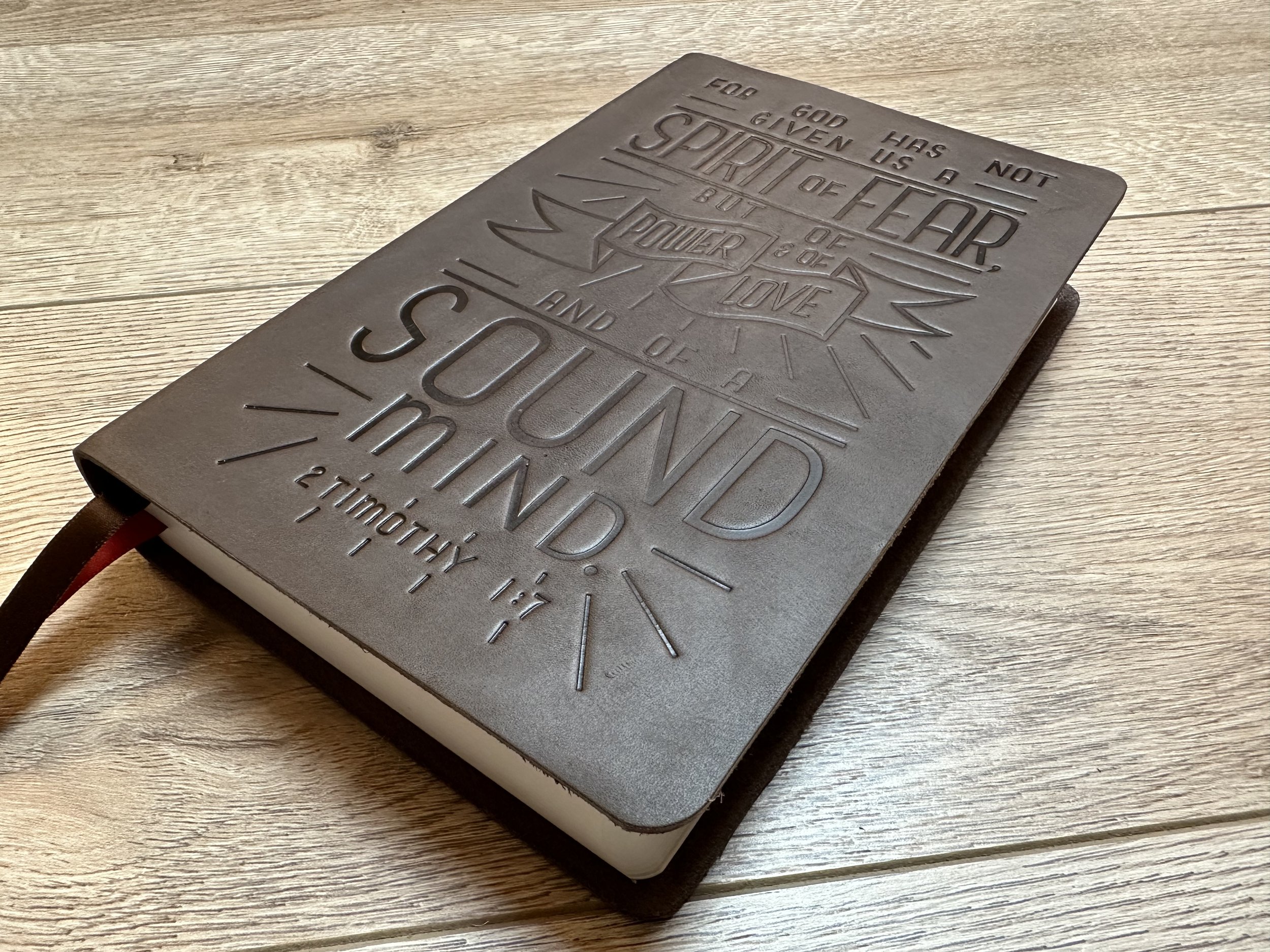 I think most people like a good thinline. There’s just something about the feel of it in your hand. This one features Psalm 18:30 on the cover—“As for God, His way is perfect; The word of the Lord is proven; He is a shield to all who trust in him.”
