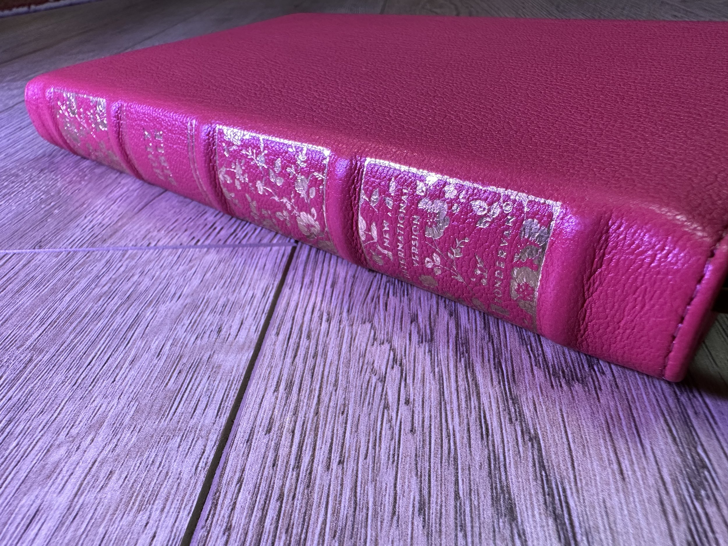 The Premier Collection NIV Thinline has all the bells and whistles. The cover, spine, gilt, bookmarks, and liner are all things of beauty and even more, they all tie in together to make a lovely Bible. Let’s look at each aspect individually.