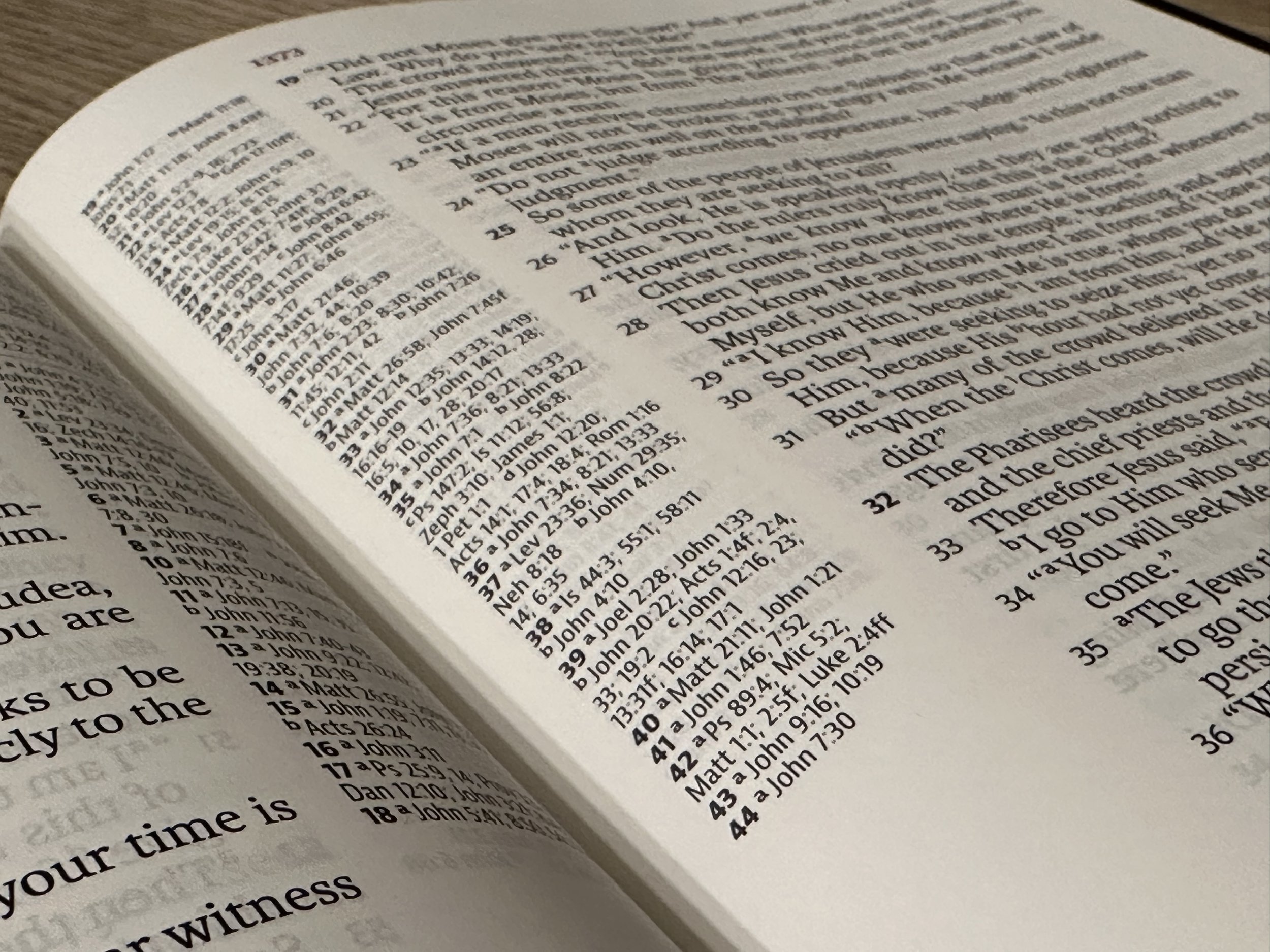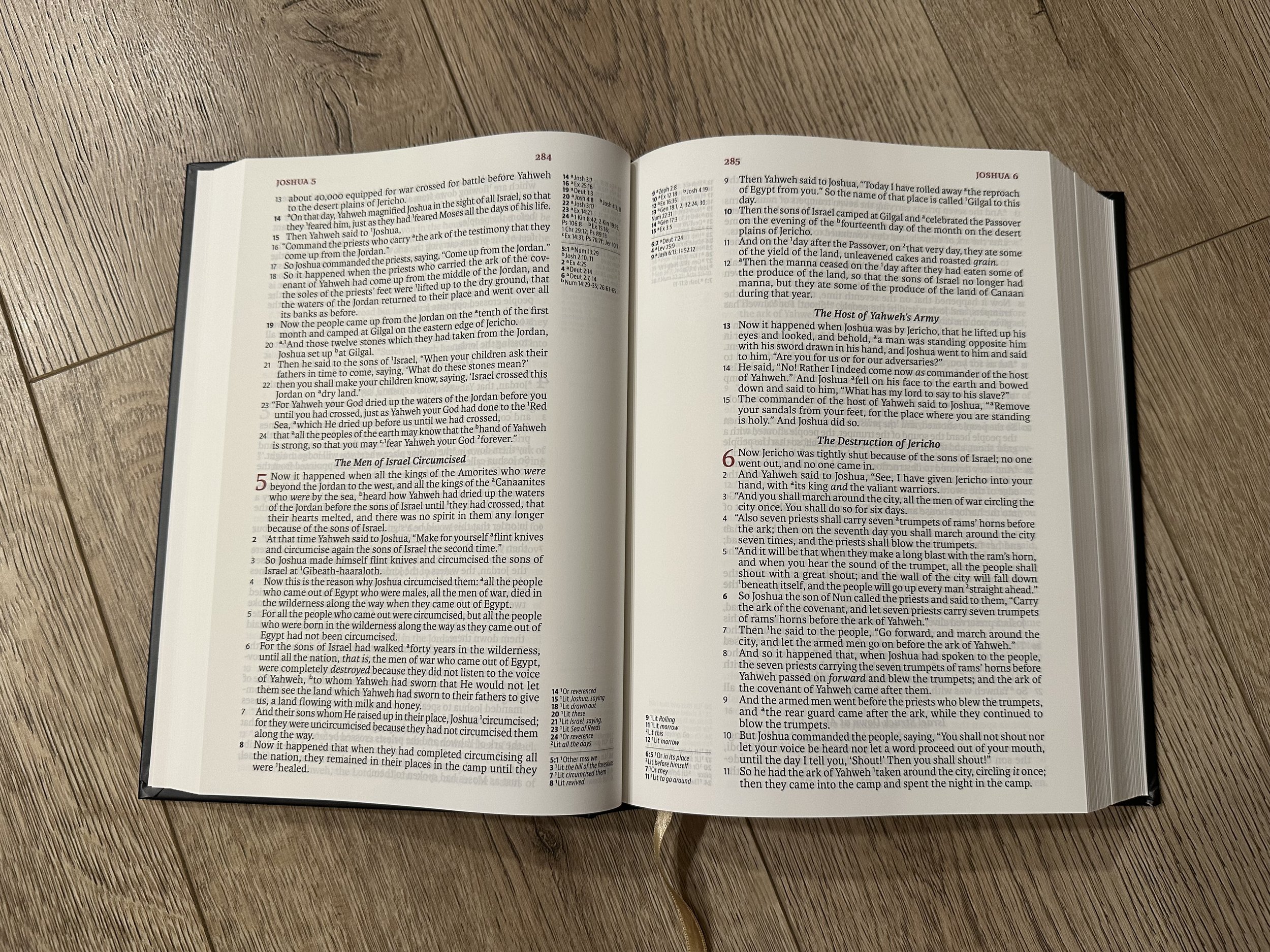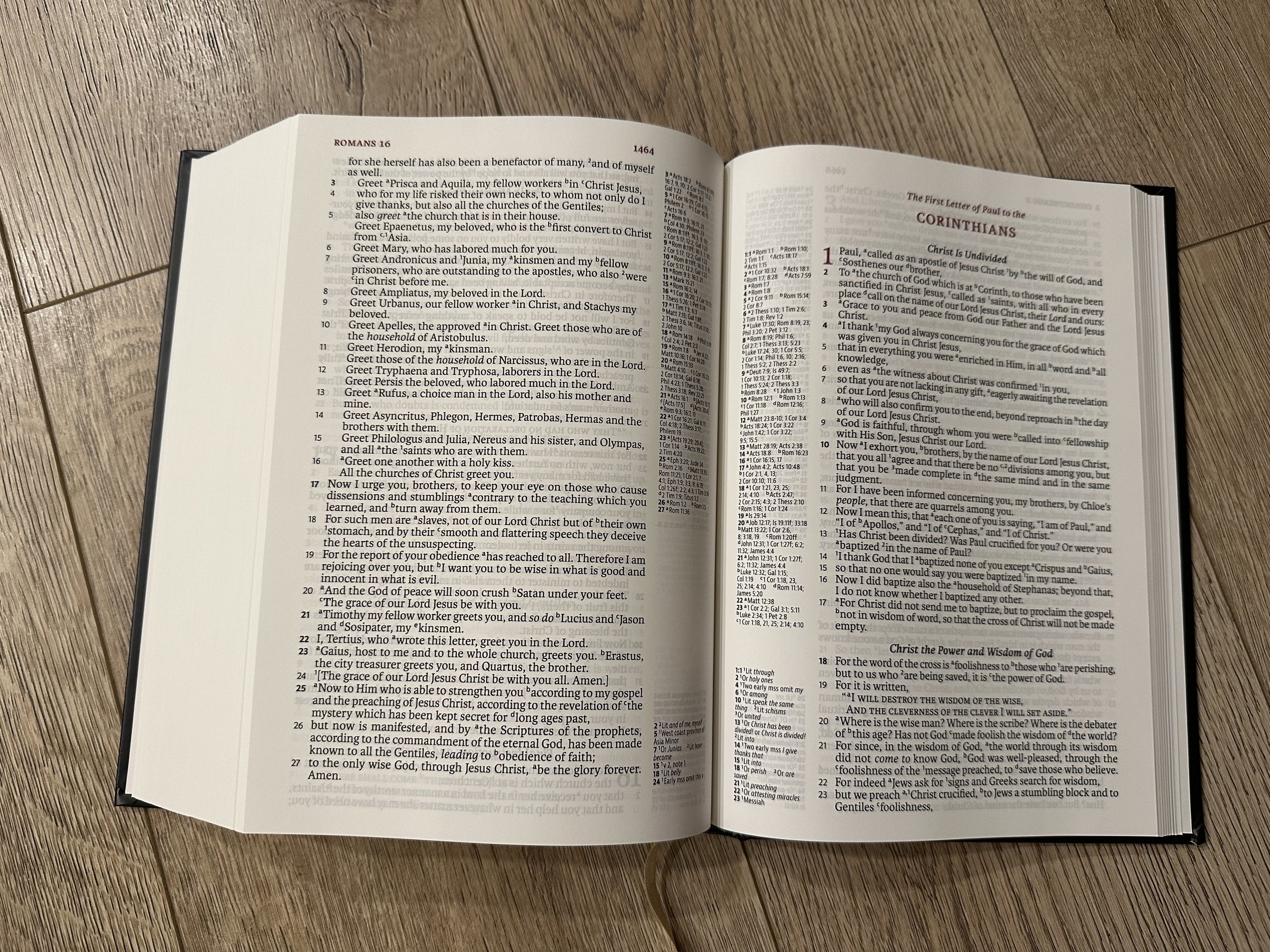 The paper is a 40 gsm. It’s incredible. It’s thick, opaque, and feels great in the hand—and it’s in a hardcover Bible! It’s truly incredible. This was typeset by 2K Denmark. It boasts an 11 point font. If you’ve read any of my reviews then you know I’m a bigger is better font size type of person. I love the font size in this Bible! Page headings and chapter numbers feature a red accent color. It’s also typeset in my favorite layout, which is single column verse-by-verse. In the inner margin you’ll find over 95,000 cross references on top and over 14,000 footnotes on the bottom.
