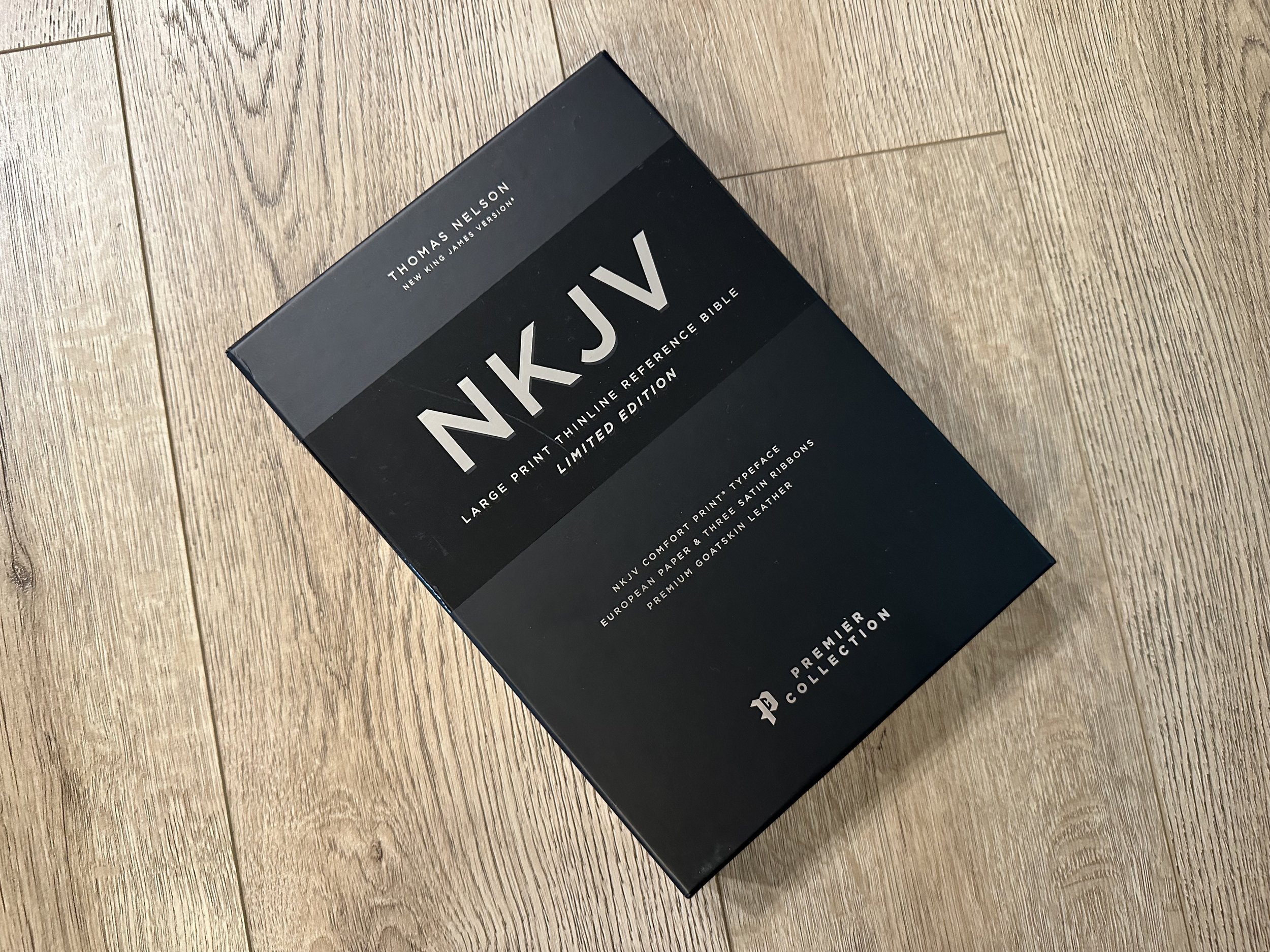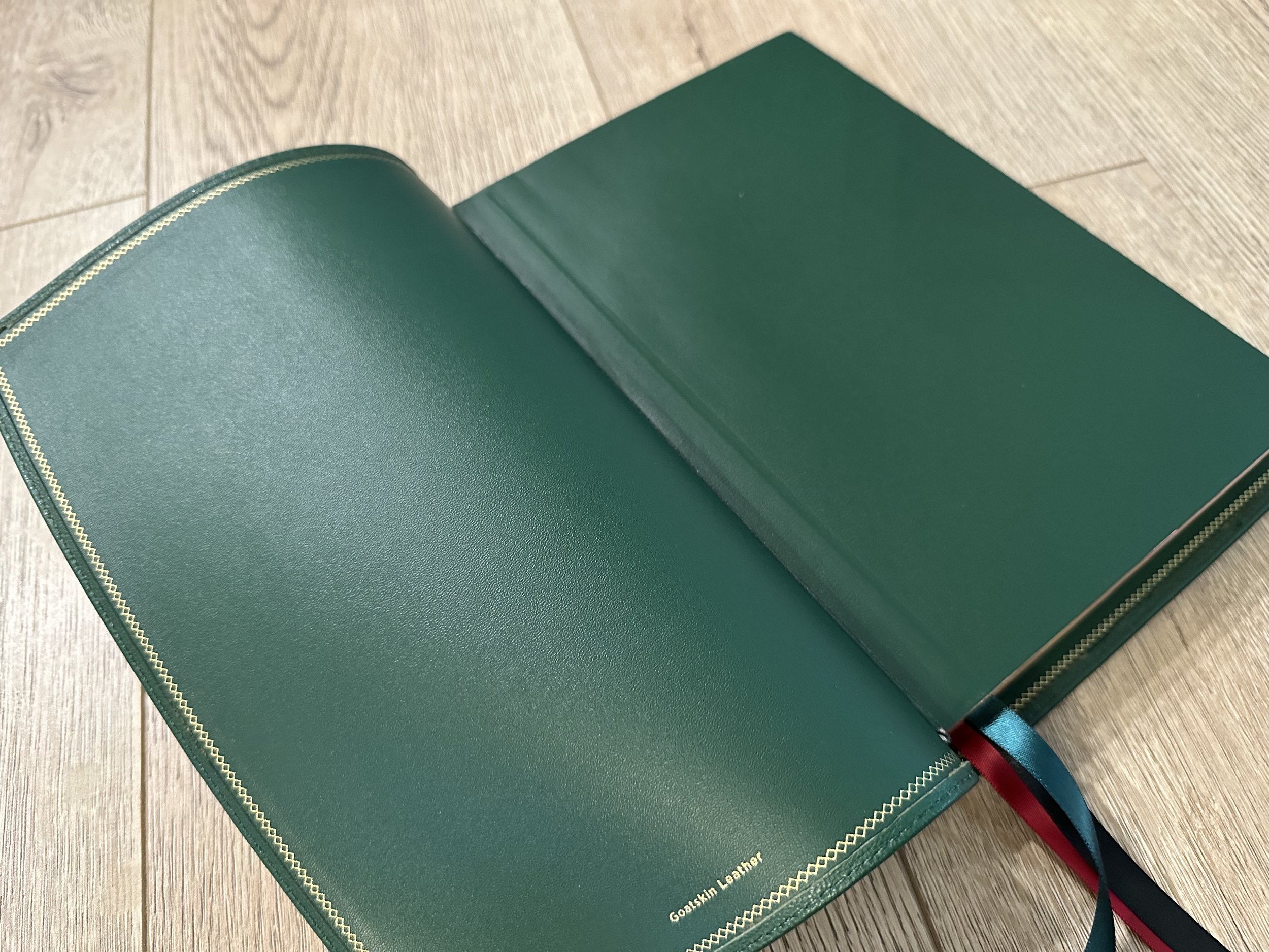 I love these beautiful colored goatskins that Thomas Nelson has been putting out. Even more, I love a beautiful green Bible. It’s one of my favorite colors and the Large Print Thinline Reference has quickly become one of my favorite layouts.