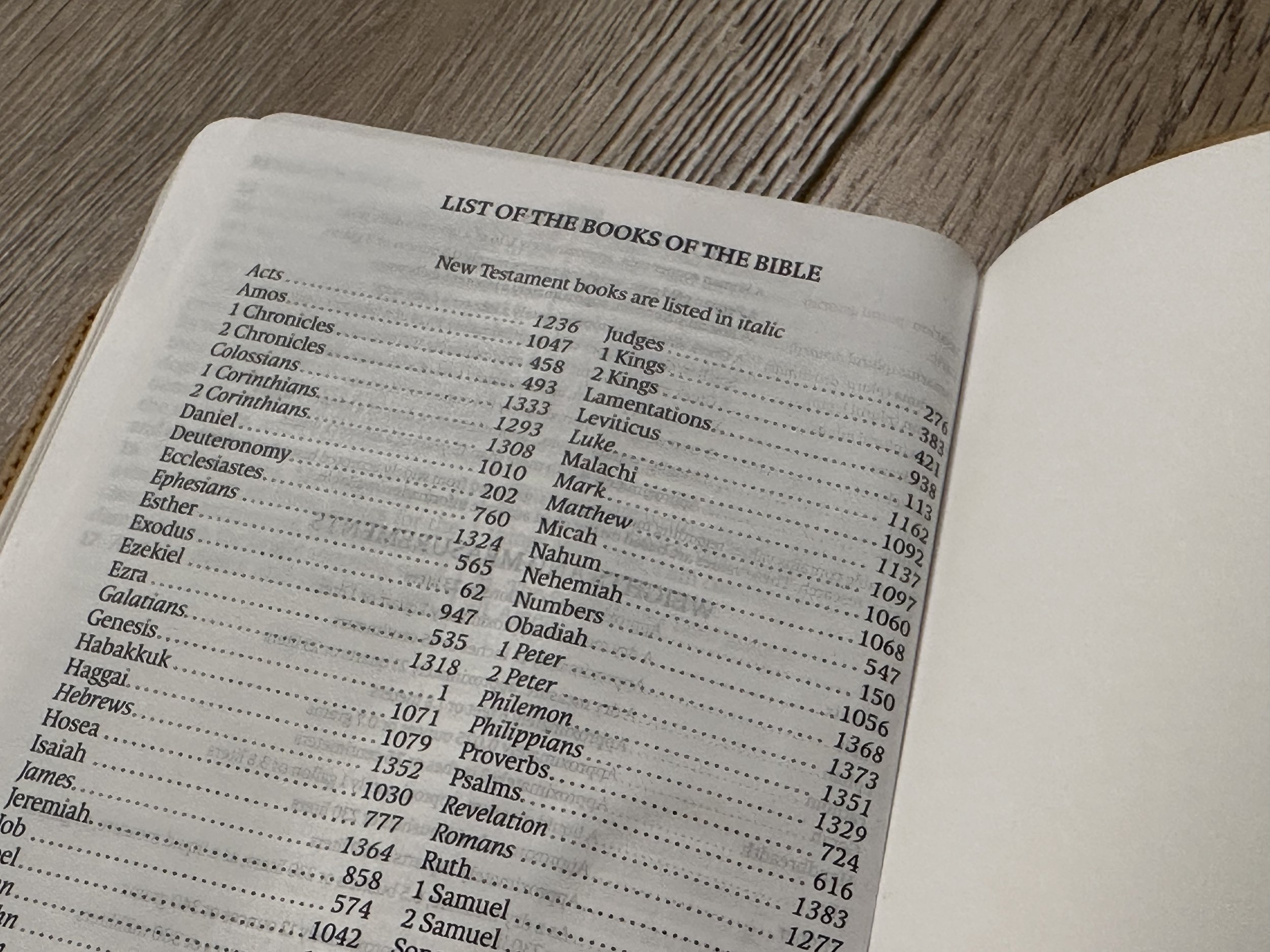 In the back you’ll find table for money, weights, and measures as well as a list of books of the Bible.
