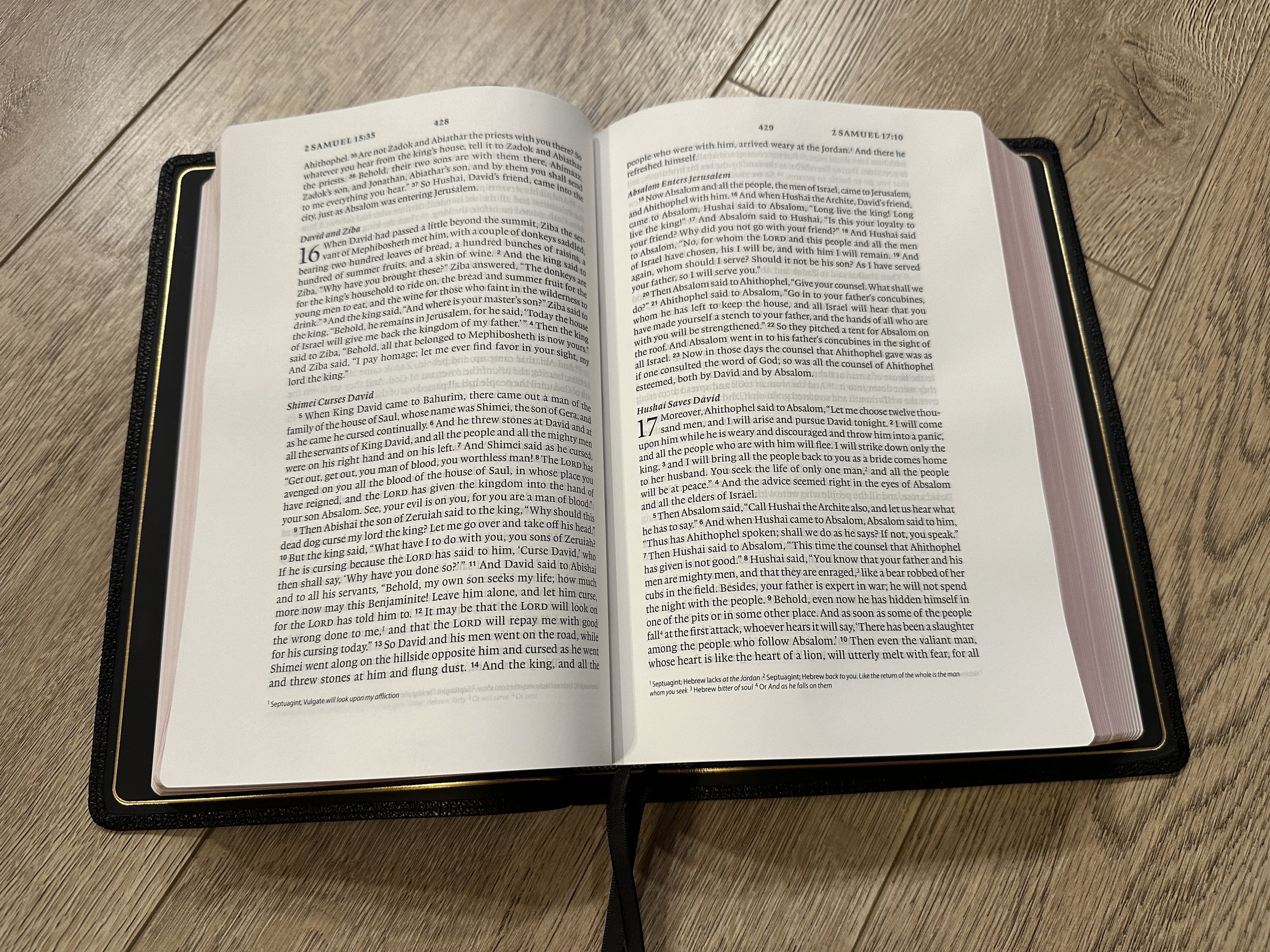 I know it sounds like I’m complaining, but I really like this Bible and the block is where it really shines. However, this Bible uses a very thin cover. It looks great, but the Bible just pours over your hands when you hold it. I really think they need to make the cover a bit sturdier to give the Bible a bit more structure when it’s open.