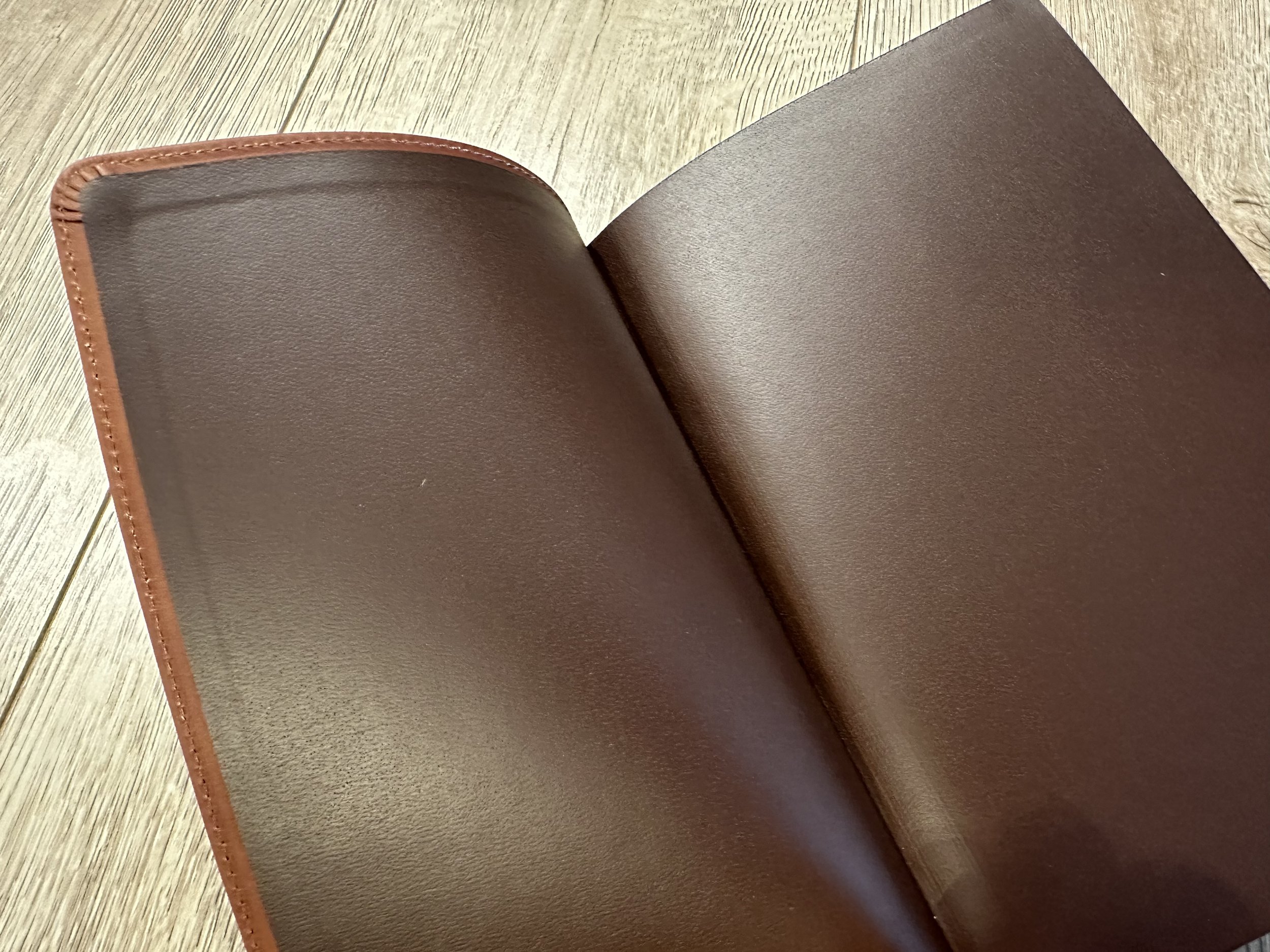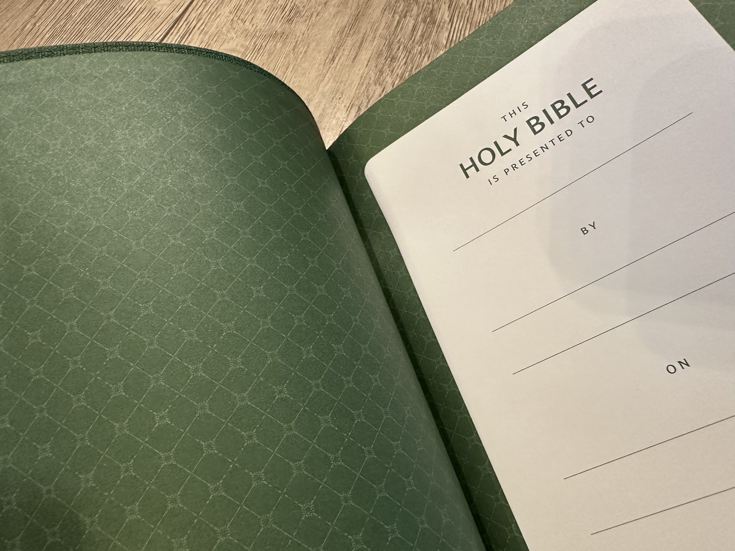 Inside the genuine leather is a dark brown vinyl paste down liner with matching vinyl end sheets. The green features a lighter green paper liner with a paper presentation page. Both Bibles feature the same paper. I am unsure of the gsm, but it is nice and opaque. The text is line-matched as well.