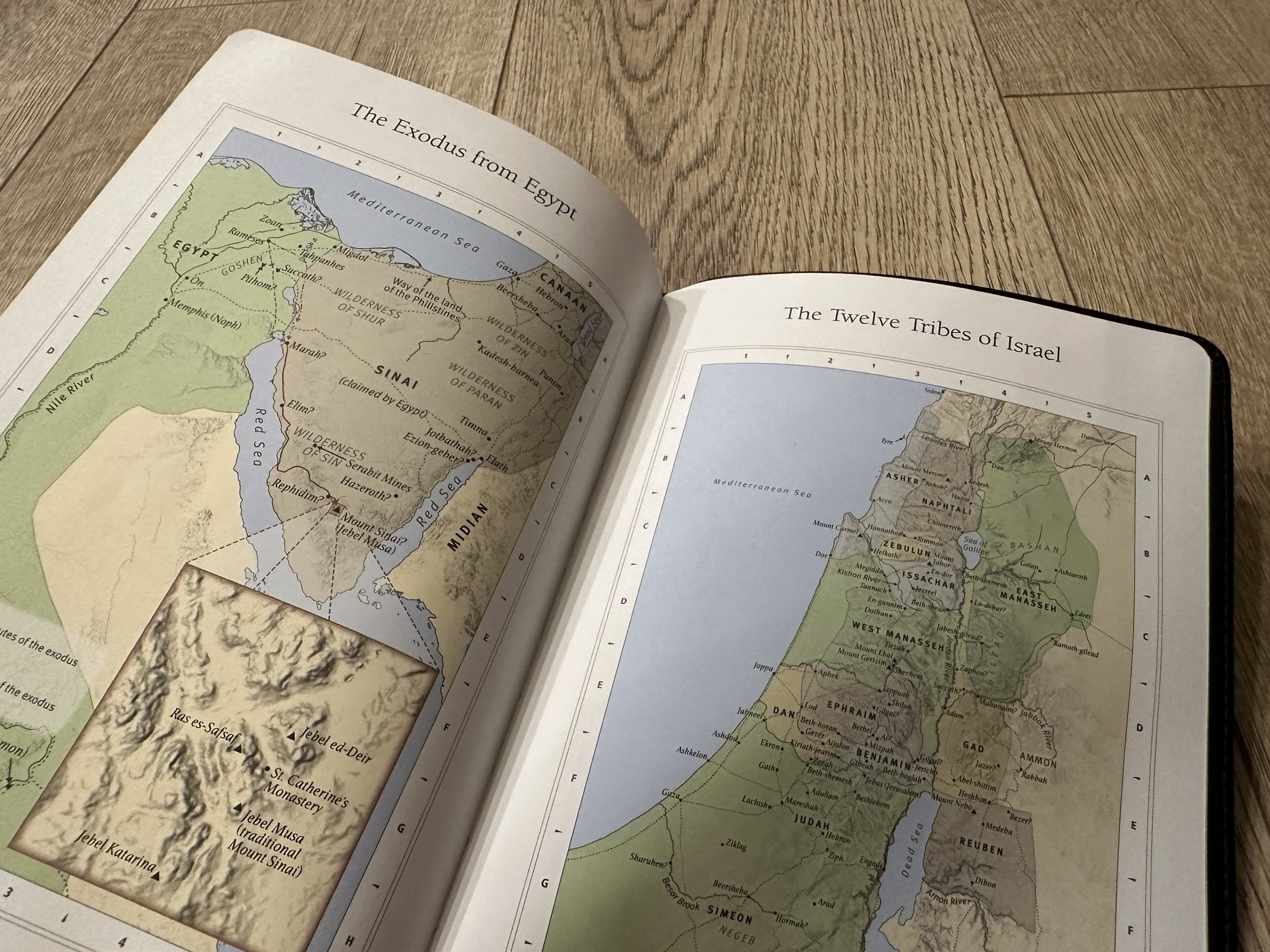The back features several full color maps that are on card stock paper. They aren’t glossy and I’m a big fan of that choice. Glossy maps in a Bible just aren’t great, but these are well done. I still prefer no maps, but these are great as far as maps go.