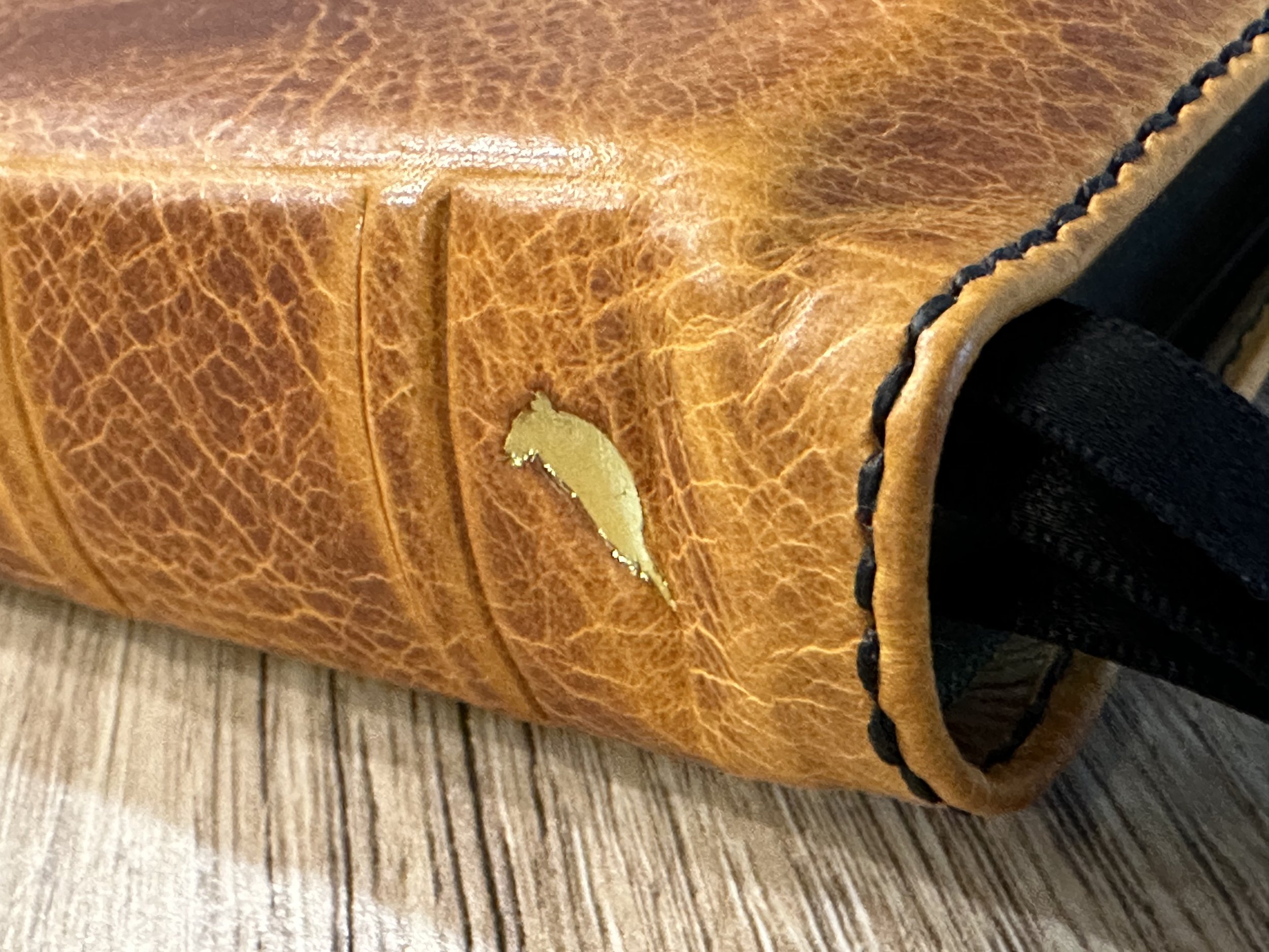 The spine has five raised ribs and the looling around them in top notch. Even more, I love his spine stamping. The large letters he used for the gold ESV is one of my favorite things about this Bible. It pops and shines! I also love the little bird logo at the bottom.